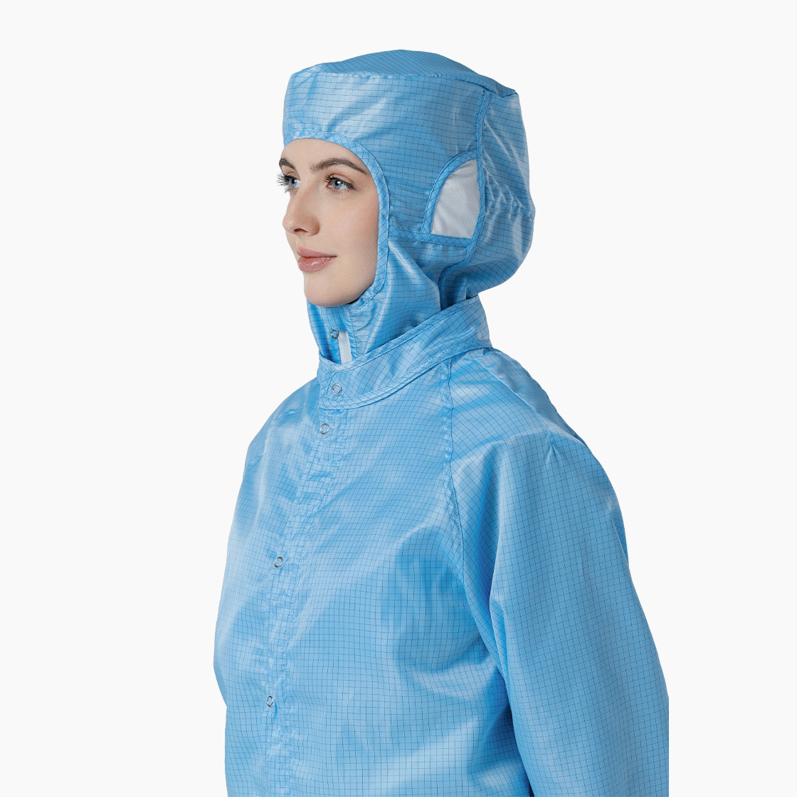 Капюшон может быть дополнен фильтромодулями в области ушей для улучшения слышимости без риска для чистоты помещений.