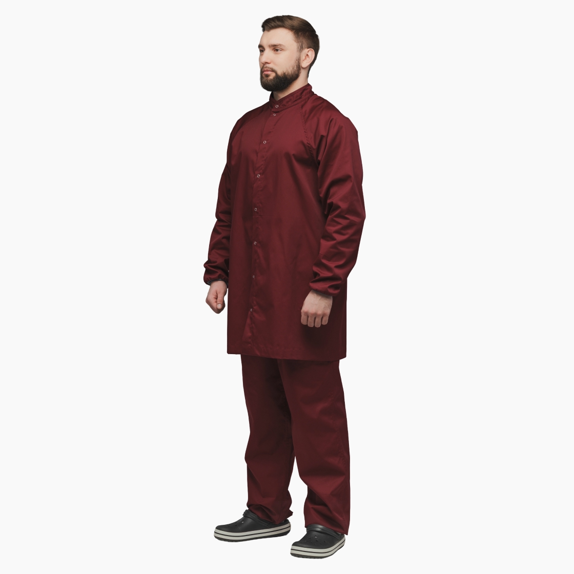Застежки-кнопки выполнены из нержавеющей стали и выдерживают многократные циклы стирки и автоклавирования.